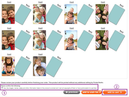- Click 54 images to personalize the backs of your cards with 54 photos.